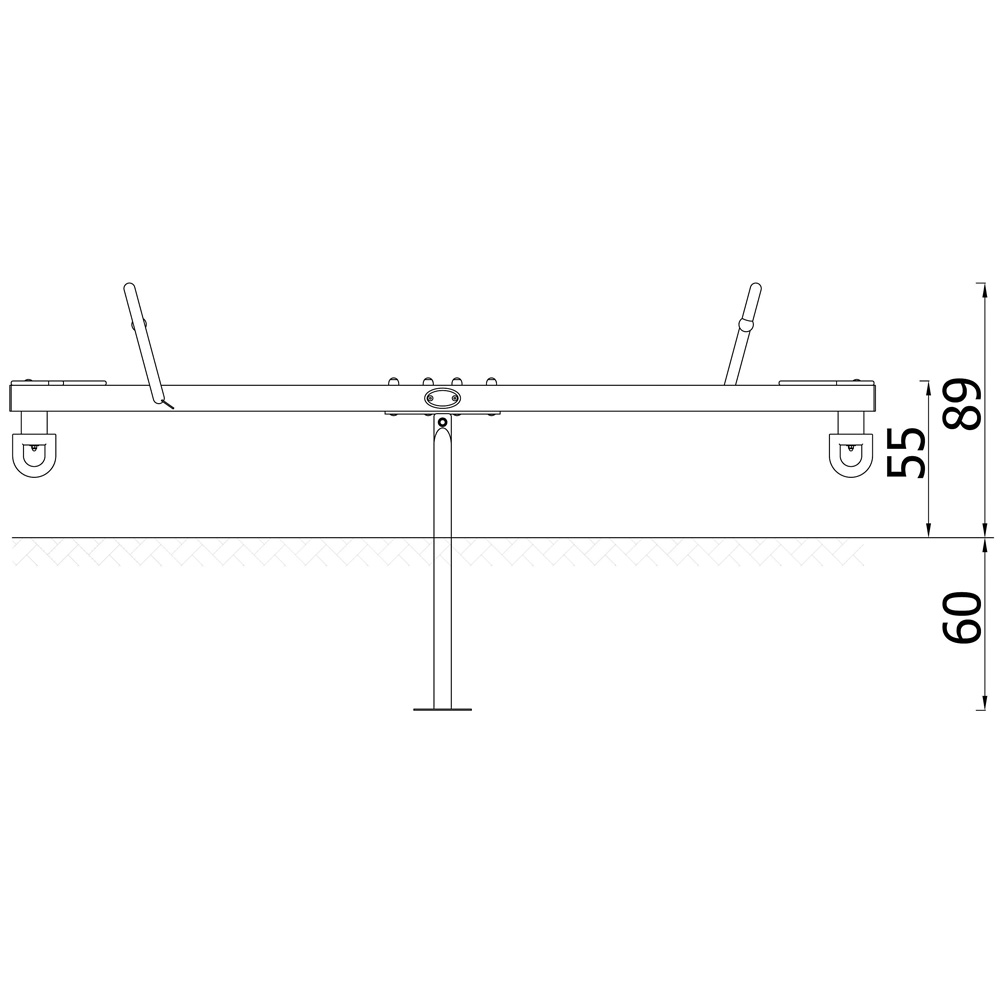 Variante der klassischen Balkenwippe mit modernen Haltegriffen. Dezente Farbgebung in Grau-Tönen passend zu unseren Kollektionen Quadro Simple und Orbis Simple. • aus verzinktem und pulverbeschichtetem Stahl – witterungsbeständig • Sitze aus robustem HDPE • inkl. Prallschutz • Anzahl der Nutzer: 2 • Grundfläche: 301 x 48 cm • Sicherheitsbereich: 501 x 248 cm (Fläche: 12 m²) • Gesamthöhe: 89 cm • max. freie Fallhöhe: 91 cm • Sitzhöhe (waagerecht): 55 cm • von 3 bis 14 Jahren