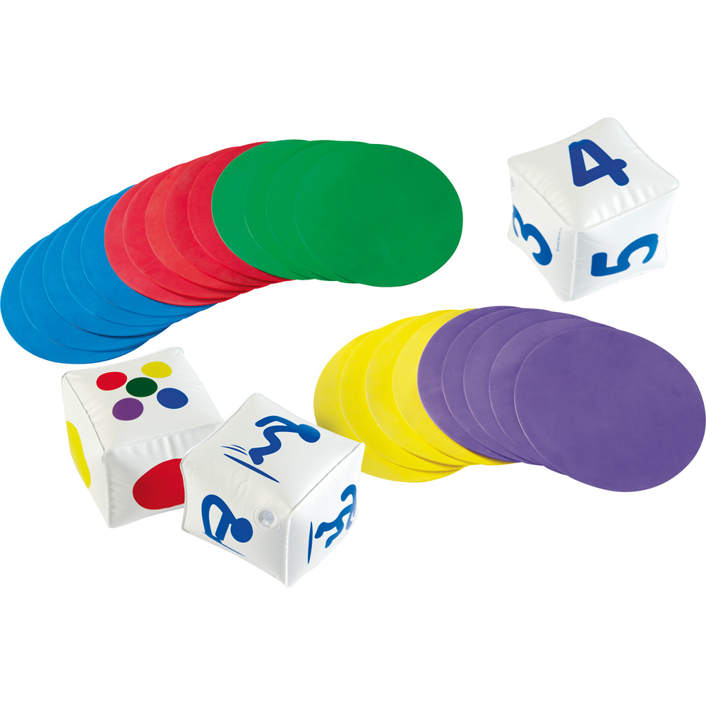 • 3 aufblasbare Würfel - mit Farben, Zahlen und Symbolen; Masse: 13 x 13 x 13 cm
