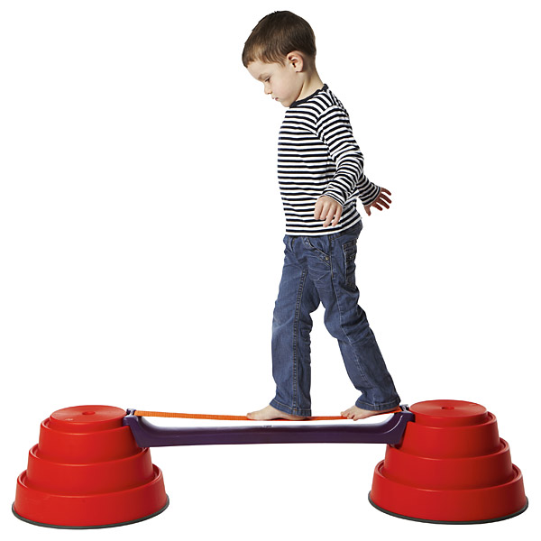 Balancieren wie ein Seiltänzer; zwischen zwei stabilen Pollern (601030, 601064 - separat bestellbar) gespanntes elastisches Band; Spannkraft des Bandes regulierbar; Grundschiene aus Kunststoff, verstärkt mit Stahl.