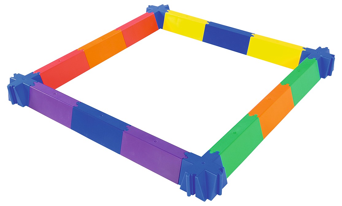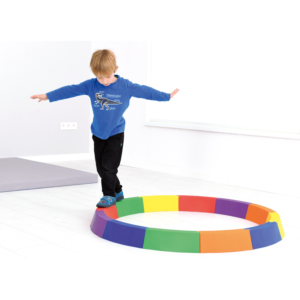 Set aus 28 Teilen in 6 Farben für eine Bahn in Kreis-, Viereck- oder Wellenform; freie Verbindung der einzelnen Elemente möglich; hervorragend für Balanceübungen.
