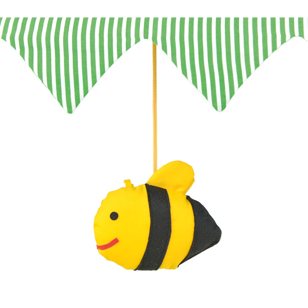 Der Baldachin bildet den Sommerhimmel mit Bienchen, die nach Blumen suchen.