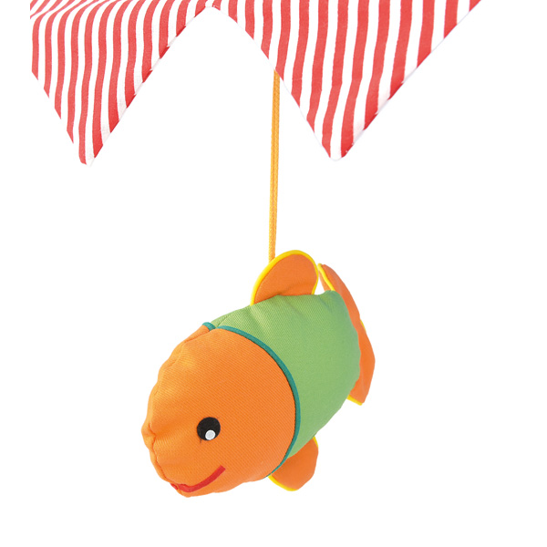 Der Baldachin bildet die Wasseroberfläche, unter der lustige Fische schwimmen.