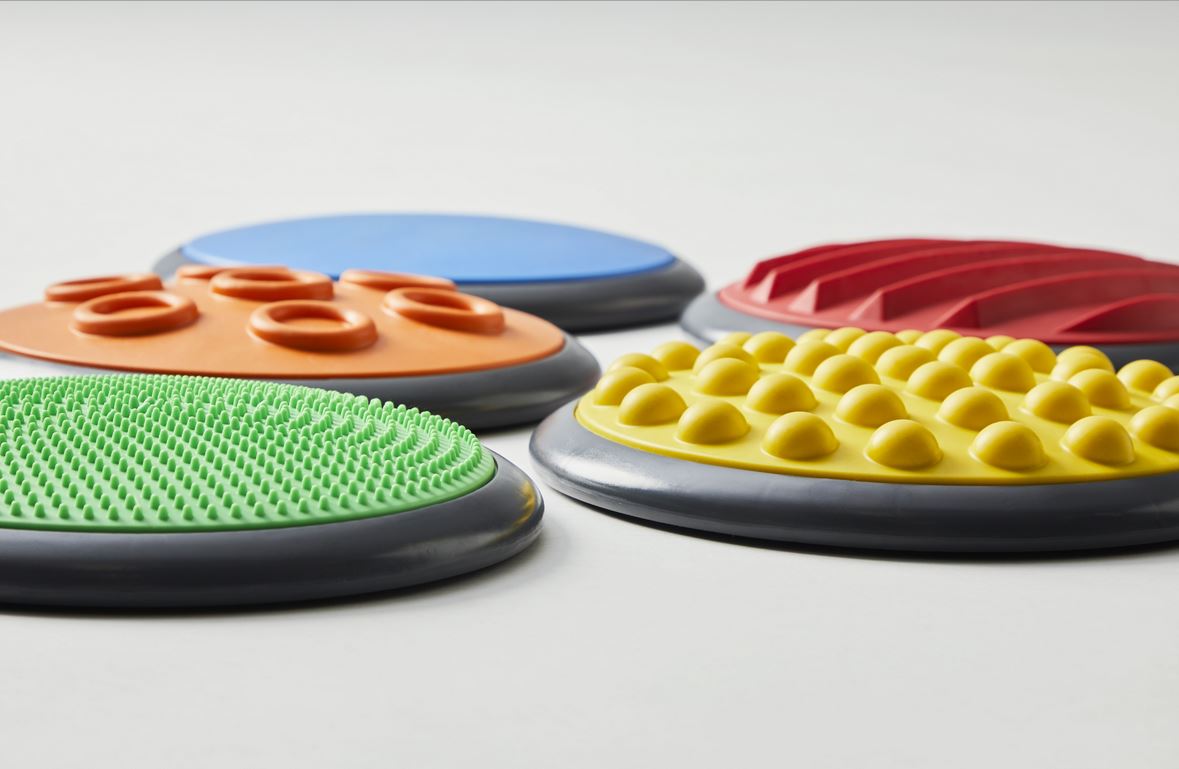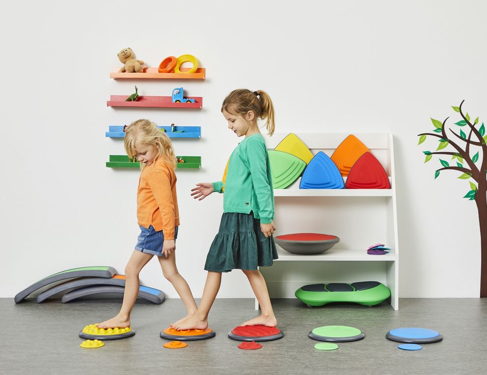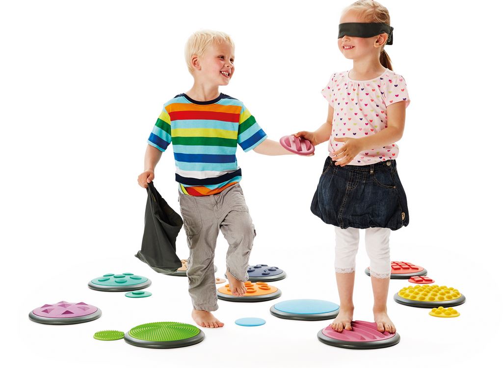 Dieses taktile Scheiben-Set aus griffigem Kunstgummi spricht gezielt den Tastsinn von Kindern an – an Händen und Füssen. Die markant strukturierten Oberflächen fördern die sensorische Wahrnehmung und regen dazu an, Sinneseindrücke in Worte zu fassen.