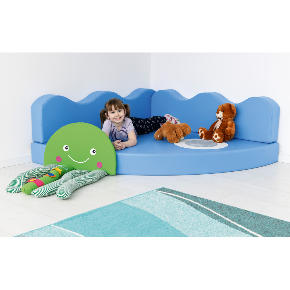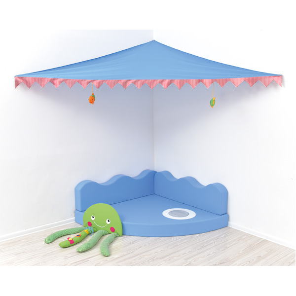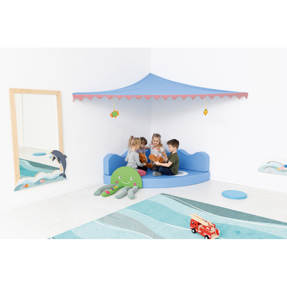Farbenfrohe Spielecke mit niedlichen Applikationen, erhältlich in 2 Versionen - Unterwasserwelt und Karottenfeld. Aus 2 Teilen: Spielmatte mit Wandlehne (101425, 101426) und Baldachin (101423, 101424) - jeweils separat zu bestellen. Sie schaffen einen ruhigen Ort zum Spielen, an dem sich jedes Kind geborgen fühlt. Hier kann man nicht nur spielen, sondern auch den Tastsinn trainieren oder sich einfach vom Alltagstrubel zurückziehen.