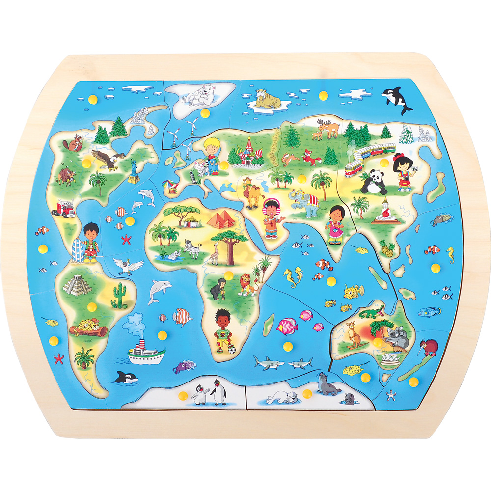 Holz-Einlege-Puzzle - Weltkarte