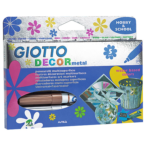 Faserstifte mit Metallic-Farbe; eignen sich zum Zeichnen auf Papier, Metall, Holz, Plastik, Leder und Glas; extra robuste, langlebige Spitze; giftstofffreie Farbe auf Wasserbasis; lichtbeständig und geruchlos.