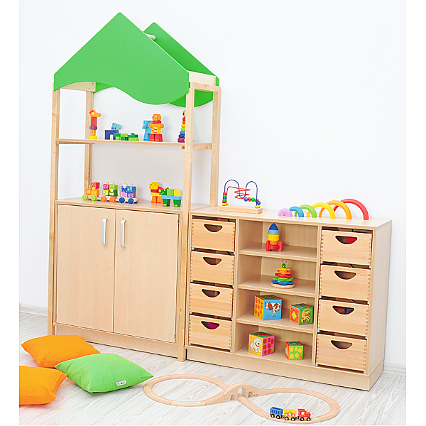 • 100298 Schrank S mit 2 Trennwänden, für Holzbehälter, auf Sockel, 1 Stück