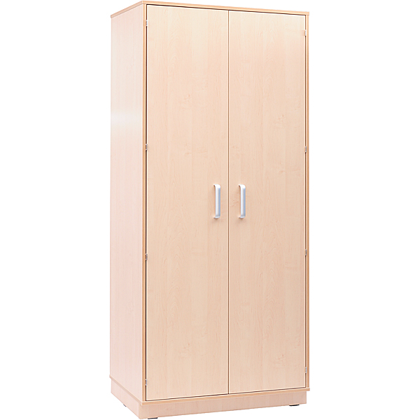 Der geräumige Kleiderschrank hat mittig eine Trennwand, auf beiden Seiten befinden sich je eine Kleiderstange und 2 Ablagen (oben und unten).