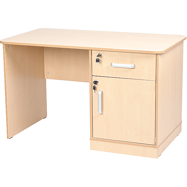 Schublade und Schrankfach sind abschliessbar. Schrankfach mit einem Einlegeboden. Mit Rückwand als Sichtschutz im oberen Bereich.