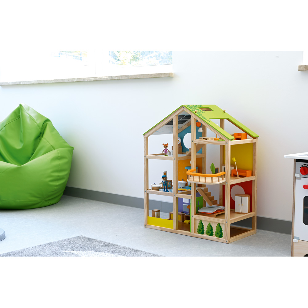 Grosses, aus Holz gefertigtes Haus, verfügt über 6 Zimmer und eine bewegliche Treppe. Puppen nicht enthalten, bitte separat bestellen (531085-531087).