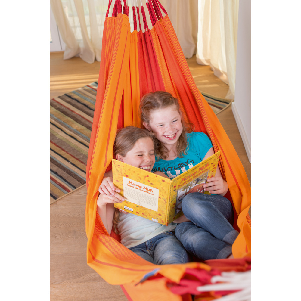 Hängematte aus BIO-Baumwolle in schönen Farben. Die Ränder wurden doppelt verstärkt. Die grosse Anzahl an Aufhängeschnüren sorgt für die optimale Gewichtsverteilung und damit Bequemlichkeit sowie Langlebigkeit.