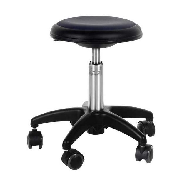 Ohne Rückenlehne; mit Rollen; Sitzfläche aus Kunstleder, abwischbar. Belastbar bis 80 kg.