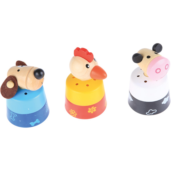 Der Hund bellt, der Hahn kräht und die Kuh macht muh, wenn man darauf drückt. Funktioniert ohne Batterie.