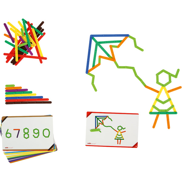 Die kleinen Stäbchen lassen sich einfach miteinander verbinden. So enstehen phantasievolle Bilder und nebenbei werden Feinmotorik und räumliche Vorstellung geschult. In einer praktischen Kunststoffbox.