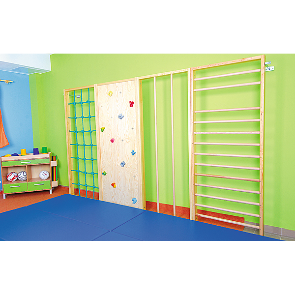 Die Sprossen- und Kletterwände 026xxx werden mit Montagematerial für die Montage an der Wand (Wandabstand ca. 10 cm) geliefert. Zur Montage mit grösserem Wandabstand (40 cm) benötigen Sie zusätzliche Wand- und Bodenbefestigungen (026039, 026040 - separat erhältlich).