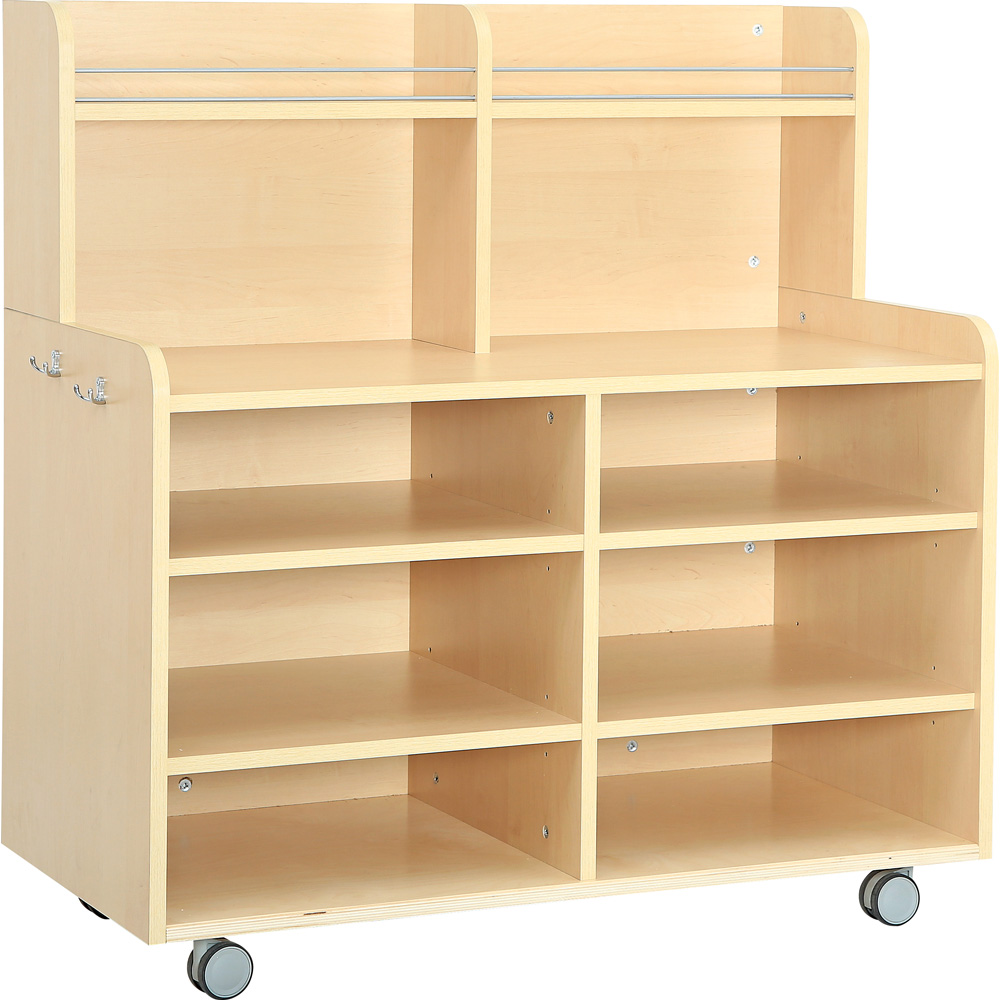 Geräumiges und praktisches Möbelstück zur Aufbewahrung von Geschirr, mit 4 Rollen (2 feststellbar). An der Seite befindet sich ein Metallgriff, zum einfachen Transport; die andere Seite verfügt über Haken. Im unteren Schrankteil 2x2 Einlegeböden (höhenregulierbar). Küchenbüffet kann mit passenden Türen ausgestattet werden (separat zu bestellen: 099697 - weiss, 099698 - Birke).