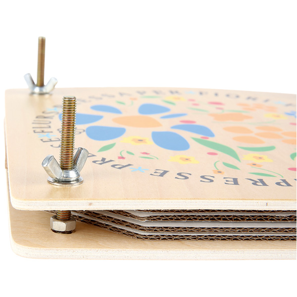 Das ideale Geschenk für kleine Pflanzenfreunde. Ob Lieblingsblume oder Forschungsobjekt - Pflanze einfach in der Presse platzieren und Schrauben festdrehen. Nach dem Trocknen werden daraus kleine Schmuckstücke, die zur Dekoration von Lesezeichen, Karten uvm. verwendet werden können. Aus hochwertigem Holz. • Masse: 17.5 x 17.5 x 2.5 cm • ab 3 Jahren