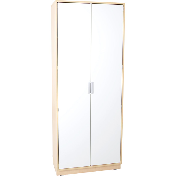Geräumiger Kleiderschrank mit Trennwand. Linke Seite mit Einlegeböden; rechte - mit 2 Kleiderhaken und oberem und unterem Ablagefach. Hochwertige Scharniere ermöglichen das Öffnen der Türen um 180°.