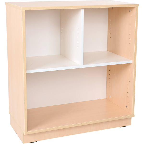 • aus laminierter Spanplatte (Stärke 18 mm) in Ahorn-Dekor (Korpus) und weiss (Trennwände und Einlegeböden)