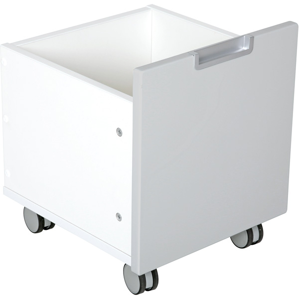 Die geräumigen Behälter helfen beim Ordnunghalten und bieten jede Menge Stauraum; Rollen erleichtern den Transport. • aus weiss laminierter Spanplatte (Stärke 18 mm) mit Fronten aus farbig folierter MDF-Platte (Stärke 18 mm) • mit Muschelgriffen, alufarben • Frontmasse: B 37 x H 37 cm • Innenmasse: B 34 x T 32,5 x H 28 cm
