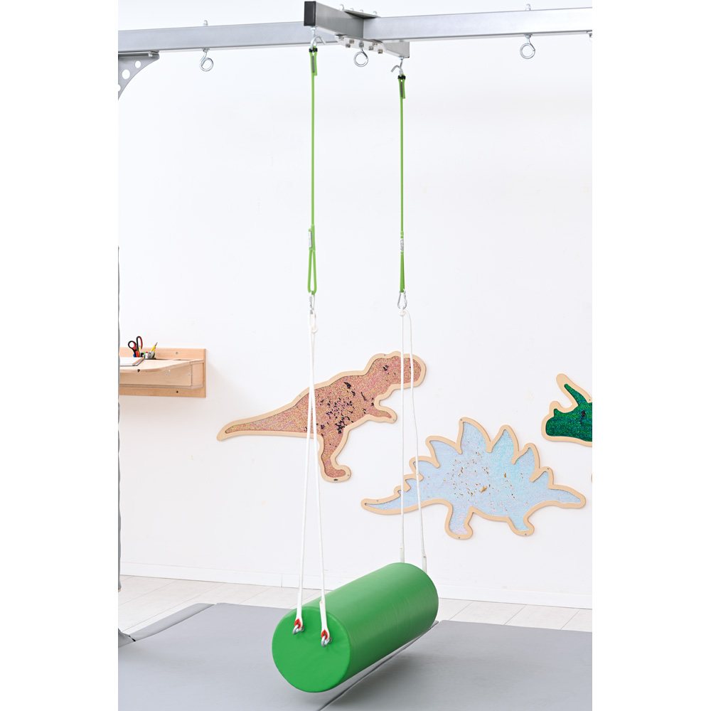 Zur Anbringung der Schaukel im SI-Therapiezentrum (092994) benötigen Sie je 1 Karabinerhaken (199134) und 1 Verlängerungsseil (199135 oder 199136), wahlweise 1 Drehgelenk (199133); separat zu bestellen.