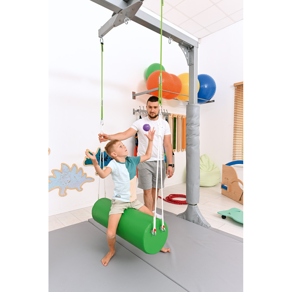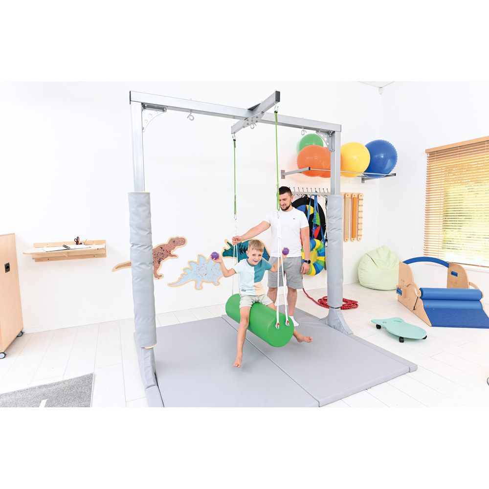 Die Schaukel eignet sich für Übungen zur sensorischen Stimulation, verbessert die Körperspannung und die Bewegungssteuerung. Gleichgewichtssinn, Koordination und räumliche Orientierung werden geschult. Wechselnde Sitzpositionen und Schwingrichtungen verschaffen den Kindern vielfältige Bewegungserfahrungen und auch der Spass kommt nicht zu kurz, z.B. bei Fang- und Wurfspielen.