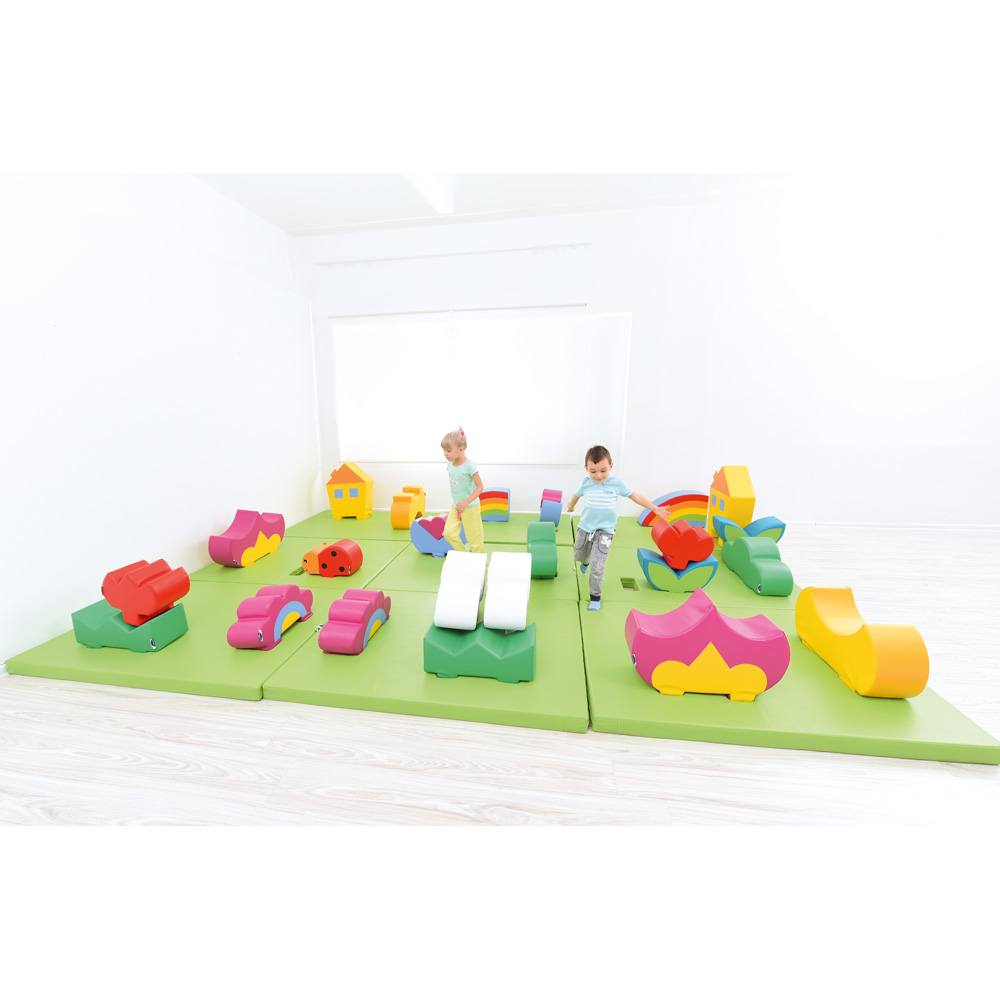 Sowohl die weichen Matten als auch die lustigen, farbenfrohen Figuren aus Schaumstoff laden zu Bewegung und Spiel ein. Problemlos können mehrere Kinder gleichzeitig spielen.