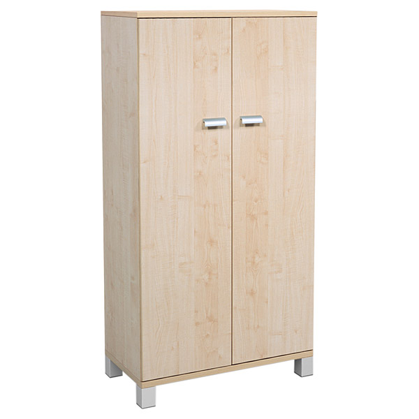 Aus laminierter Spanplatte in Ahorn-Optik (Aussenwände: 25 mm; Einlegeböden: 18 mm); mit stabilen, quadratischen Metallfüssen mit einer Einrichtung zur stufenlosen Höhenjustierung (bis 25 mm); Schränke QUADRA sind in unterschiedlichen Höhen lieferbar.