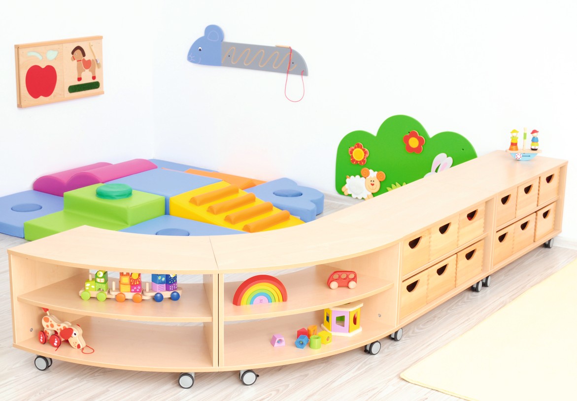 Schön gestalteter Behälter aus Massivholz in Buche und in 6 anderen Farben, mit Sichtfenster; für Spielzeuge und andere Schätze; passend für diverse Regale. Führungsschienen (100814) separat bestellbar.