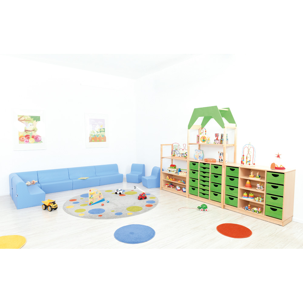 Wichtiger Bestandteil aller Spiel-, Erholungs- und Leseecken sind Sitzgelegenheiten; mit den Sofas und Sitzen aus der Kollektion Klassik lassen sich diese Ecken farbenfroh und kindgerecht gestalten. Alle Elemente sind ohne Armlehne, also platzsparend und gut kombinierbar. Ihre bequeme Form und die leuchtenden Farben zaubern Freude und Wärme in jeden Raum. Mit der Sitzhöhe 20 cm sind sie auch für Kleinkinder geeignet. Da sie so leicht sind, können sich die Kinder ihre Spielecke selbst möblieren und nach Lust und Laune umgestalten. Mal ist es ein Zug (ein Teil hinter dem anderen), mal eine gemütliche Sitzecke für den Kuchenklatsch mit den Puppen. Die Sitze sind aus festem Schaumstoff mit pflegeleichtem Bezug aus phthalatfreiem Kunstleder. Alle Sofaelemente werden in 3 Sitzhöhen, 20, 26 und 34 cm, und in 6 Farben angeboten.