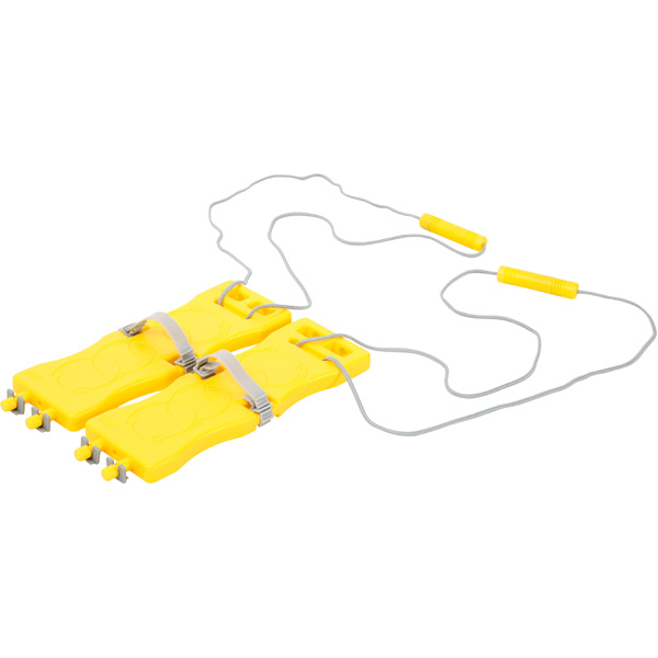 Für Wintersport-Freunde sind diese Sommer-Ski bestens geeignet um die lange Sommerzeit zu überbrücken; für eine oder mehrere Personen. Jeder Ski hat eine Schnur mit Griff und eine verstellbare Schlaufe für die Schuhe; die besondere Halterung ermöglicht das Verbinden der Skier miteinander. Zur Entwicklung von Teamgeist und Koordination.