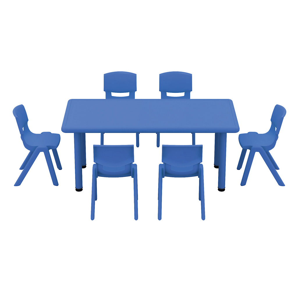 Ideal für Spielecken ist dieser Tisch mit robuster Platte aus Kunststoff und höhenverstellbaren Stahlbeinen. Kunststoffkappen schonen den Fussboden. Der Tisch erfüllt die Anforderungen der Spielzeugnorm EN 71.