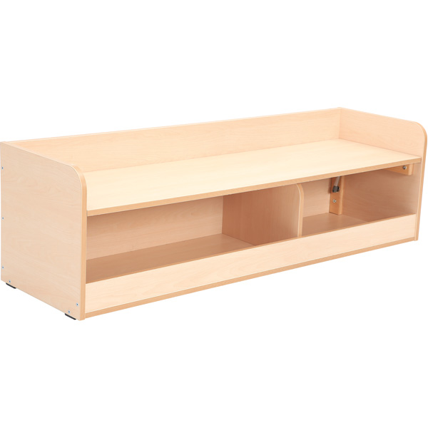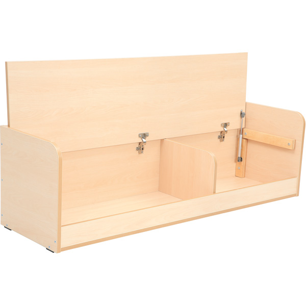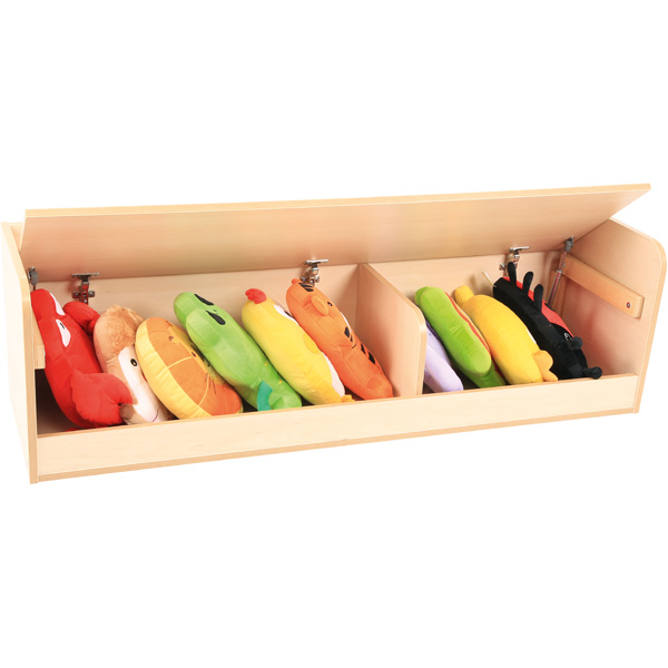 Zur Aufbewahrung von Schuhen, Kissen, Kuscheltieren oder auch als Töpfchenbank nutzbar, von oben aufklappbar. Deckel in aufgeklappter Position fixierbar.