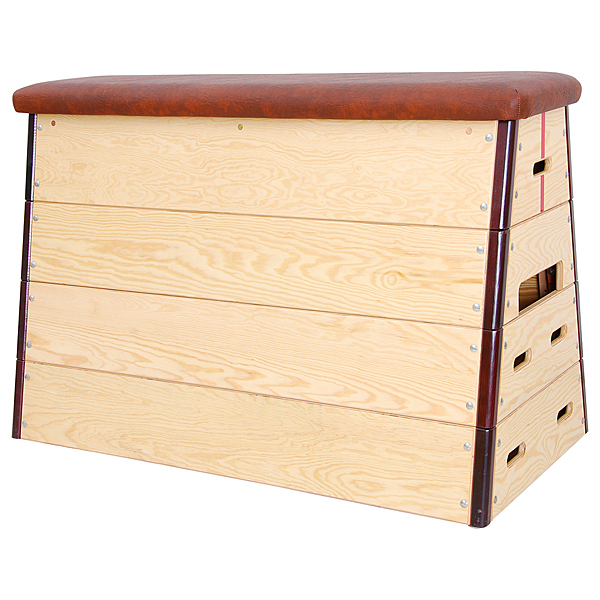 Stabiles Turngerät für Sprungübungen. Seitenwände der Segmente aus robustem Sperrholz; Kanten und Zapfen aus Hartholz; verleimt und verschraubt, dadurch hohe Stabilität der einzelnen Segmente. Verbindung der Einzelsegmente mittels passgenauer Zapfen garantiert Sicherheit und Stabilität des gesamten Sprungkastens. Oberes Segment mit Polsterung und hochwertigem, pflegeleichtem Kunstlederbezug. Der unterste Kasten ist mit vier rutschfesten Füssen ausgestattet. Erfüllt die Turngerätenorm EN 913 und EN 916. • Masse: B 135 x T 68 x H 88 cm • Tiefe am Boden gemessen