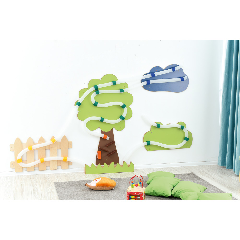 Ein lustiges Spiel, das Kinder immer wieder neu begeistert und über Stunden beschäftigt. Durch das durchsichtige Rohr schickt man Kugeln auf die Reise und beobachtet sie auf ihrem Weg. Ein farbenfroher Blickfang für jeden Gruppenraum. Zur Montage an der Wand, Rohr wird mit Klettband befestigt. Kugeln nachbestellbar.