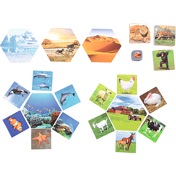 • 5 sechseckige Lebensraumkarten; Seitenlänge: 7,5 cm
