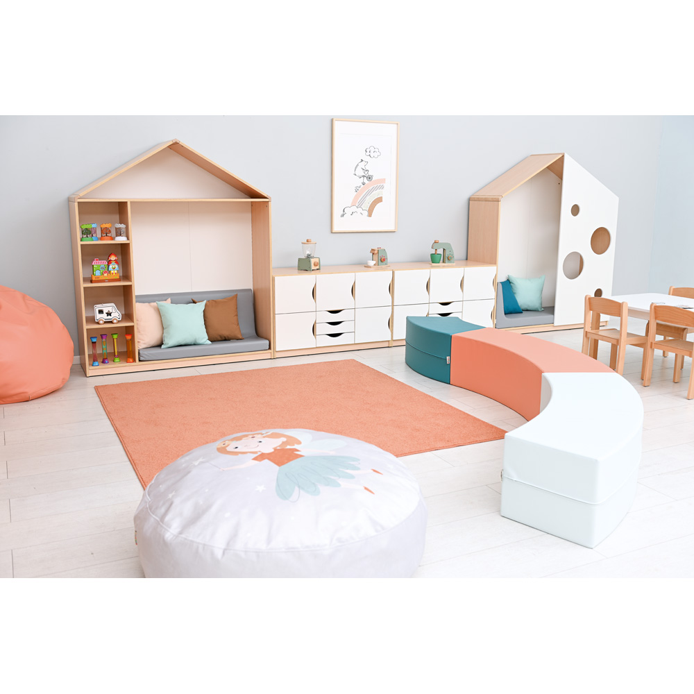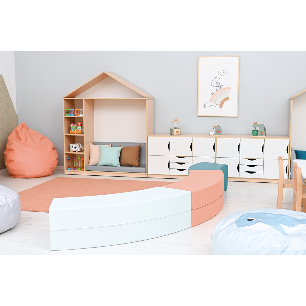 Die Bogenschränke eignen sich hervorragend als Raumteiler. Die Schrankform entspricht 1/8-Kreis.