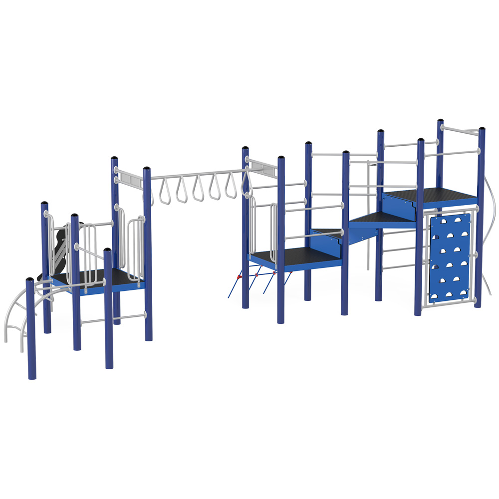 Kletterkombination mit Hangelgriffen. Auf die Kinder warten vielfältige Herausforderungen auf dieser coolen Anlage.