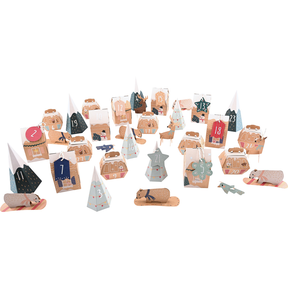 Die Wartezeit bis Weihnachten ist für Kinder oft unendlich lang. Mit diesem tollen Adventskalender werden die Tage auf originelle Art und Weise gezählt. Mini-Gondeln, Weihnachtsbäume und Skihütten können mit vielen kleinen Überraschungen gefüllt werden. Das Dorf wird durch kleine Tiere zum Leben erweckt.