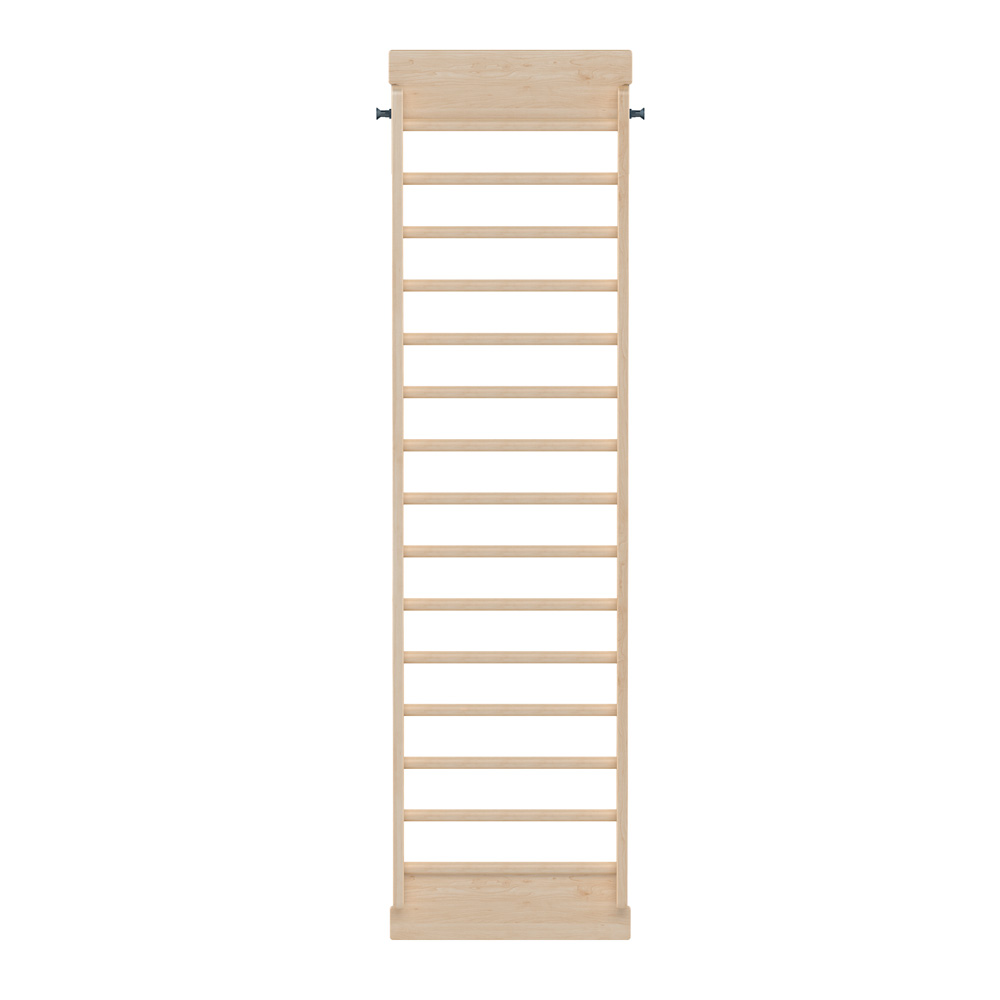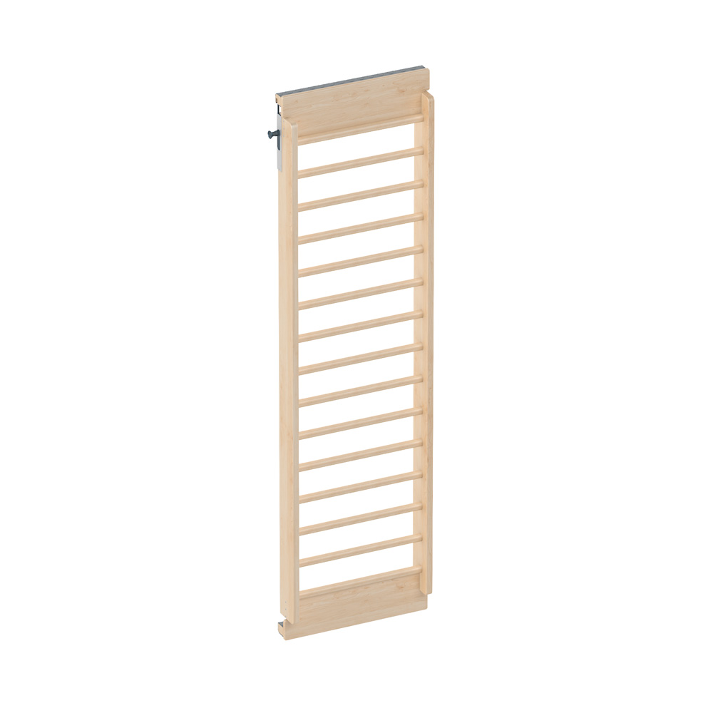 Die an den Seiten verwendeten Verriegelungen ermöglichen eine sichere und solide Befestigung der Leiter an Turnkästen. Die Holzfüsse der Leiter sind mit rutschhemmendem Gummi überzogen.