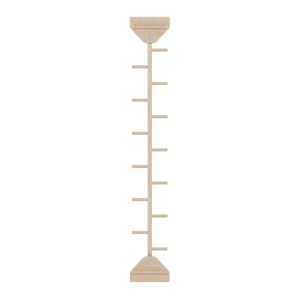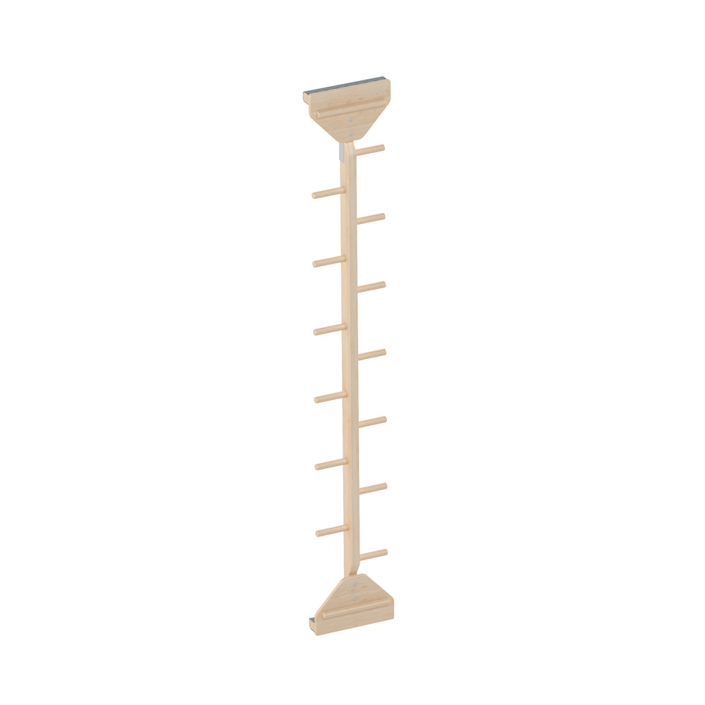 Die an den Seiten verwendeten Verriegelungen ermöglichen eine sichere und solide Befestigung der Leiter an Turnkästen. Die Holzfüsse der Leiter sind mit rutschhemmendem Gummi überzogen.