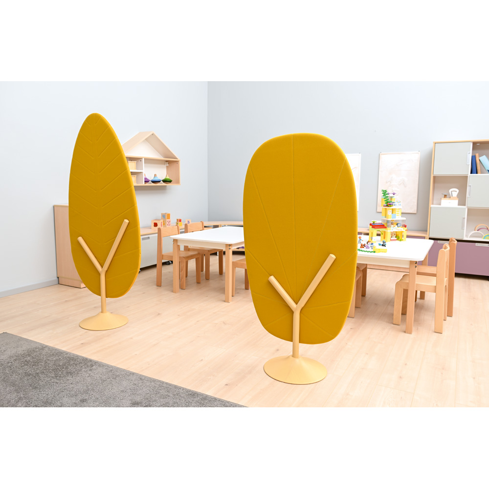 Freistehende Akustik-Trennwand in Form eines Baumes mit stabilem Standfuss aus Metall - kippsicher. Ideal für Krippen und Kitas, Schulen oder Lesesäle. Mit den Trennwänden kann der Raum schnell in verschiedene Bereiche für Spiele oder Entspannung abgegrenzt werden. Sie lassen sich jederzeit neu anordnen. Die Elemente verhindern Ablenkung durch Gespräche oder Hintergrundgeräusche. Hinzu kommt eine tolle optische Wirkung. Das geräuschmindernde Obermaterial besteht aus recycelten PET-Fasern.