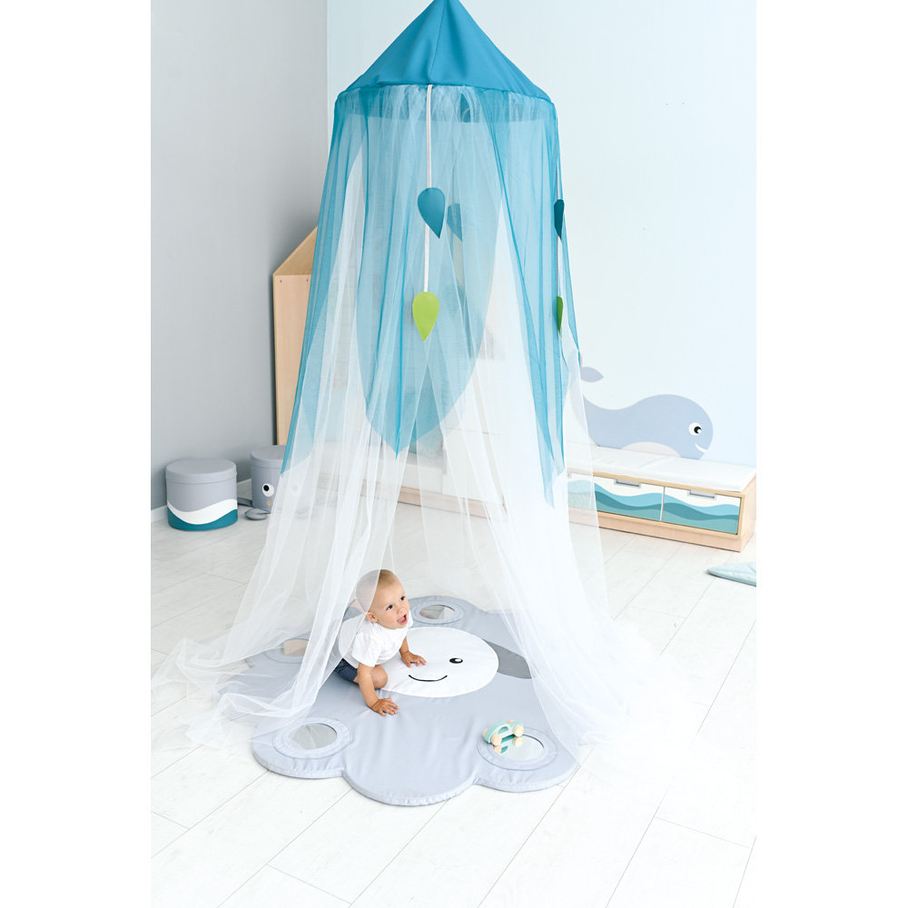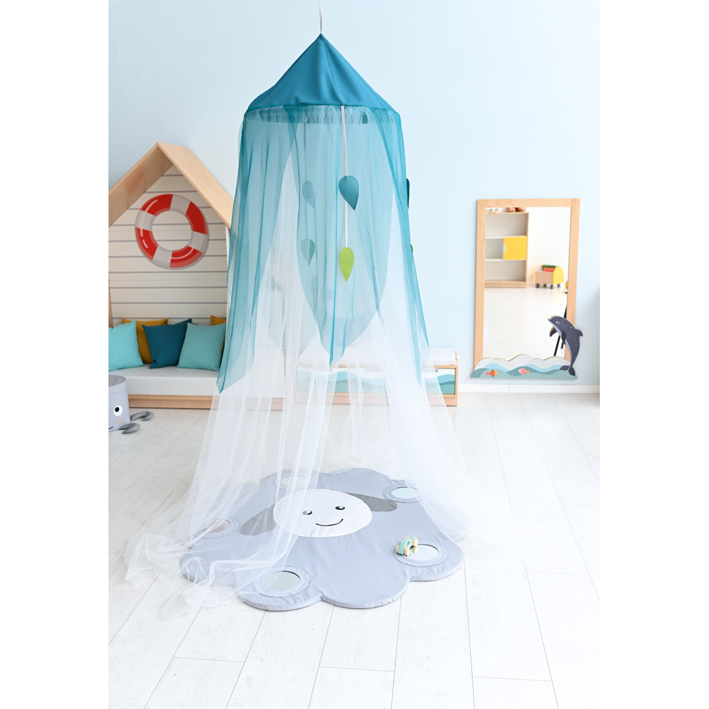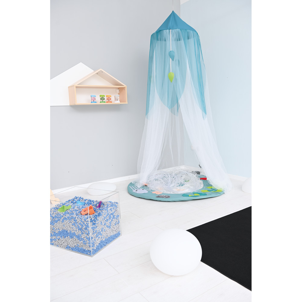 Ideal zum Aufhängen über einer Sinnesmatte. Aus feinem, transparentem Stoff, mit farbigen Blättern aus PE-Textil geschmückt.