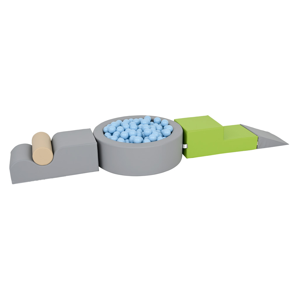Das Set aus Schaumstoffelementen schafft 3 verschiedene Zugänge zum Ballbad und macht das Spiel noch interessanter.