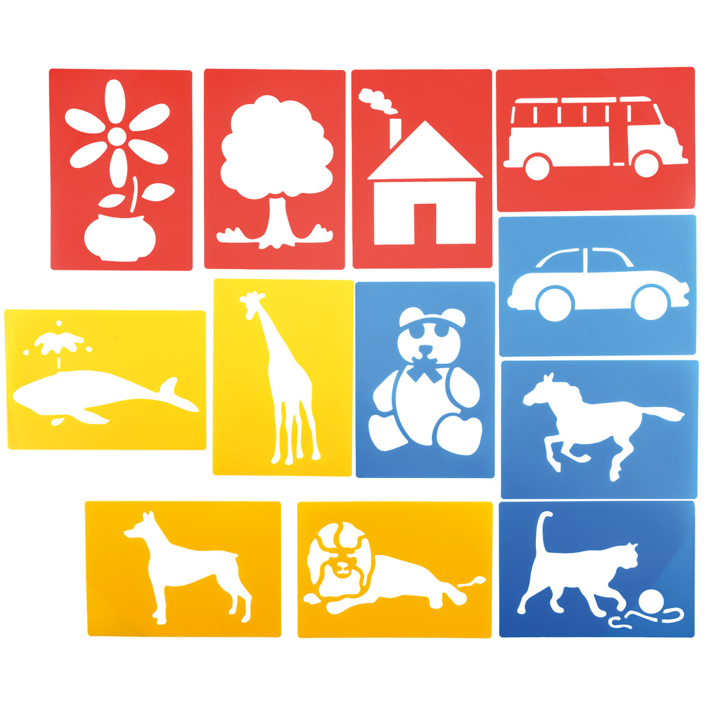 Sets aus Kunststoffschablonen zu verschiedenen Themenbereichen. Besonders stabil und einfach abwaschbar. Für Buntstifte, Faserstifte und Farbe geeignet. Die perfekte Arbeitshilfe für kleine Künstler.