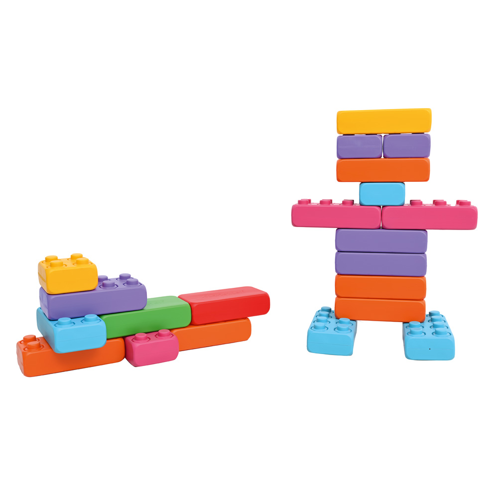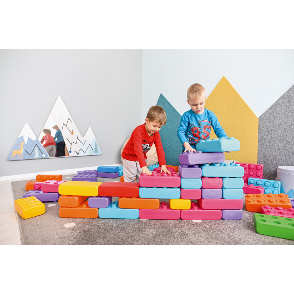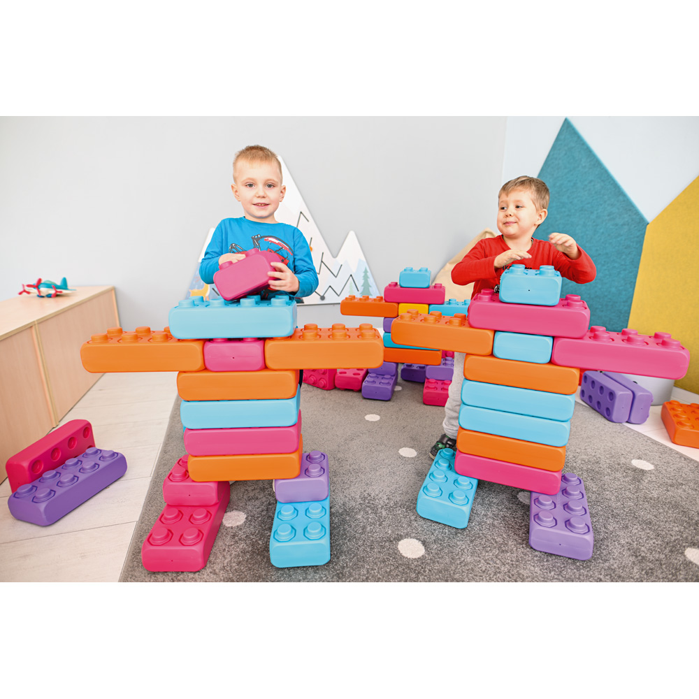 33 XXL-Bausteine aus hochwertigem Kunststoff, in Pastellfarben.