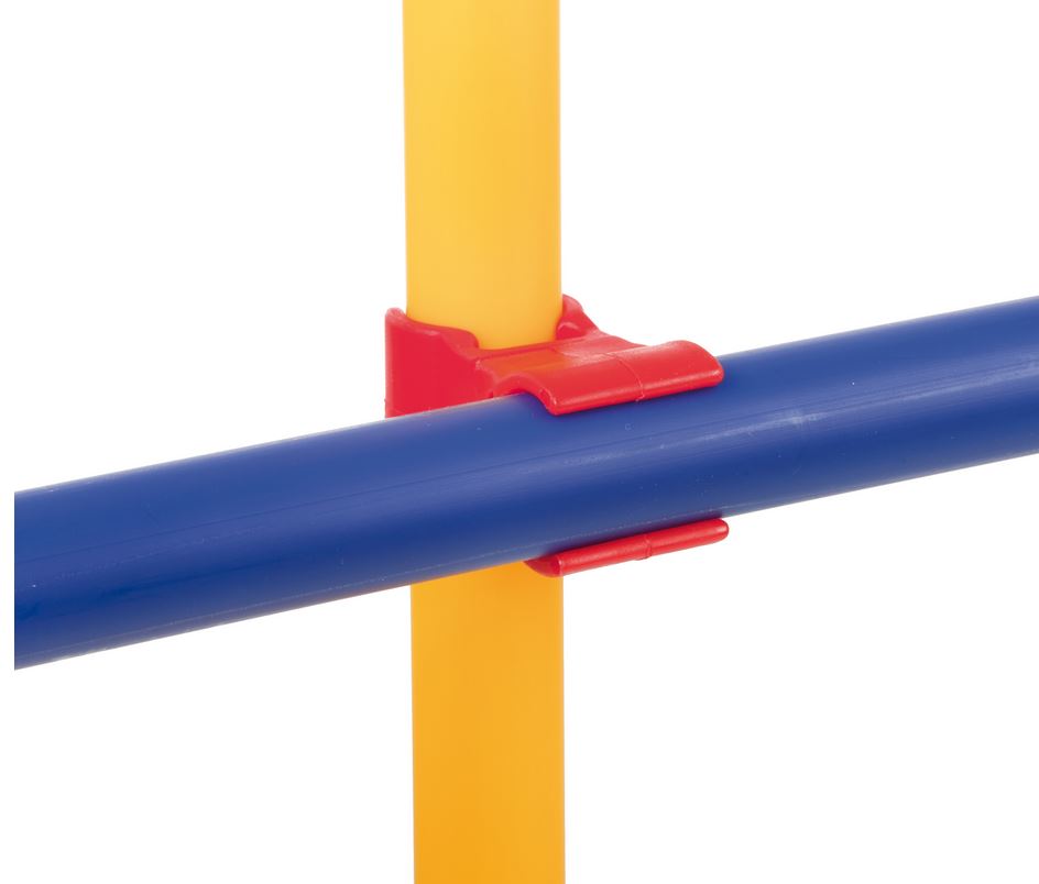 Mit den Befestigungsclips lassen sich Rundstäbe und Flachreifen sicher und flexibel miteinander verbinden – ideal für kreative Bewegungs- und Spielaufbauten.