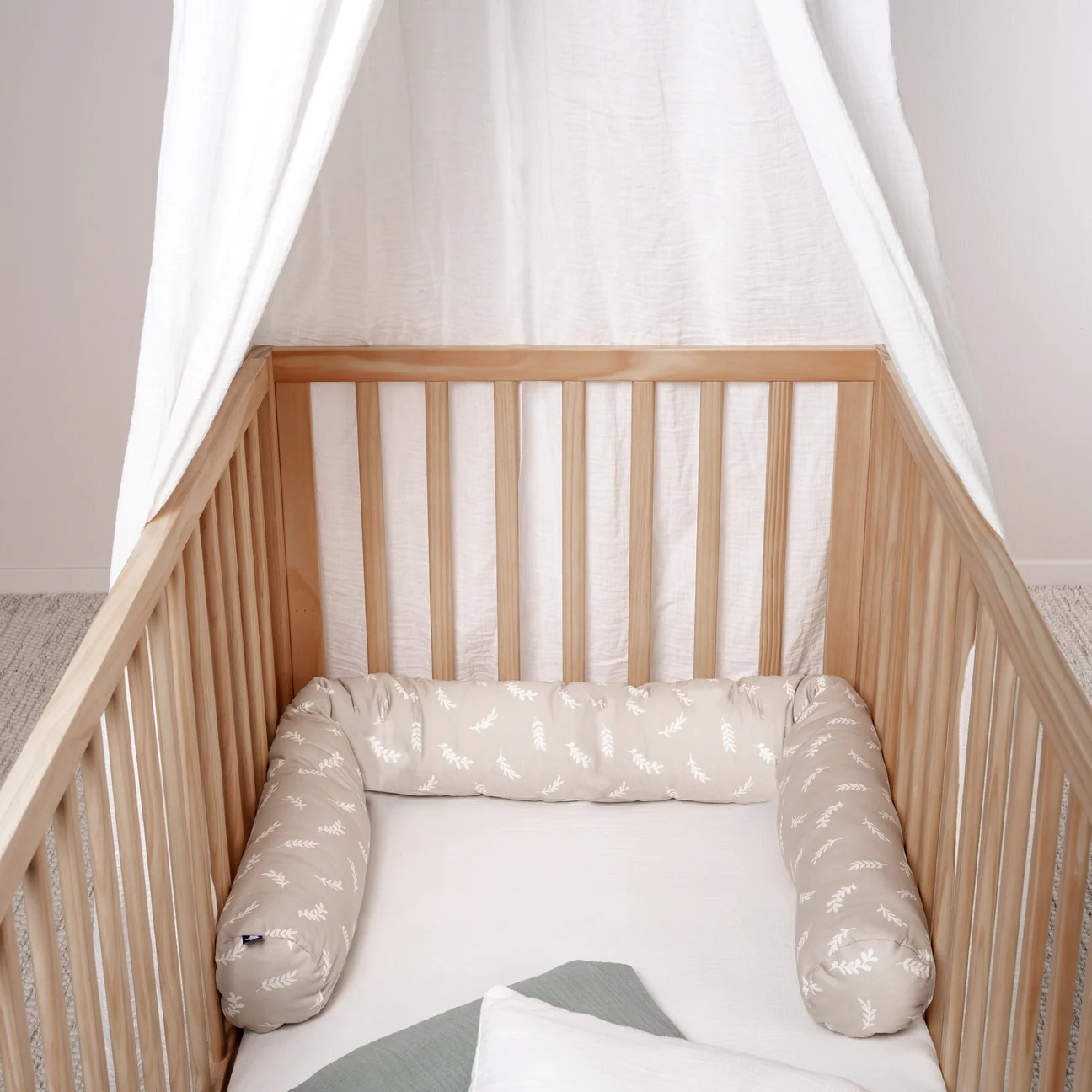 Unsere Bettschlangen schützen das Babyköpfchen vor den harten Stäben am Kinderbett und vor Zugluft. Sie sind zudem ein schönes Accessoire zum Spielen und Kuscheln. Das Nestchen besteht zu 100% aus Jersey-Baumwolle. Die Füllung ist aus Hohlfasern-Flocken (100%) Polyester). Das Nestchen ist für Kinderbetten mit dem Massen 70x140 und 60x120 cm geeignet. Das Nestchen ist in der Waschmaschine im Schonwaschgang bei 40°C waschbar.