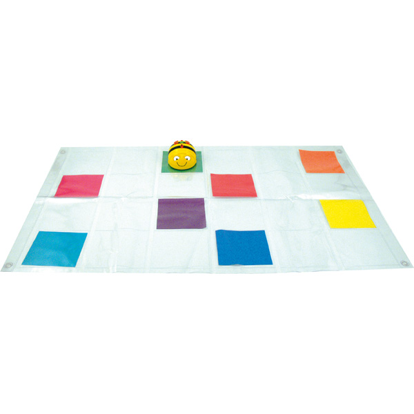 Die bunte Matte ist in Felder mit je 15 cm Länge unterteilt, was der Schrittlänge des Bee-Bots® und Blue-Bots® entspricht. Hierauf lassen die Kinder die Bots vor- und rückwärts laufen, oder eine Strecke von A nach B zurücklegen. Die Kinder erkennen, dass Roboter bzw. Computer nicht selbstständig agieren, sondern vielmehr Befehle ausführen, die ihnen von uns Menschen in Form von verschiedenen Codes gegeben werden. Sie erleben, dass diese Codes ganz exakt und wohl überlegt sein müssen, damit die Maschine auch wirklich das tut, was wir wollen. Dabei erweitern die Kinder ihren Wortschatz, indem sie eine Geschichte zu der gewählten Strecke erzählen. Die Matte bietet dank transparenter Einstecktaschen die Möglichkeit, ein eigenes Board für den Bee-Bot® zu erstellen. Die Felder können ganz nach Belieben bestückt werden: mit farbigen Blättern, Buchstaben, Zahlen, Bildern...