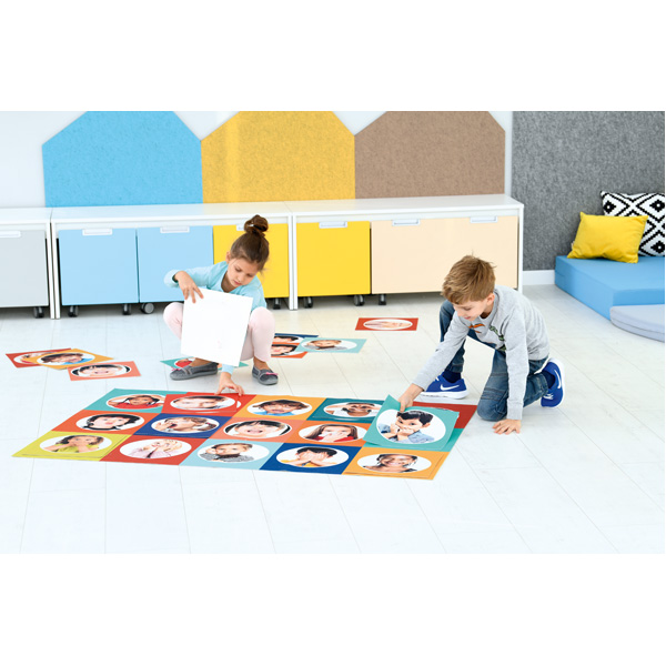 Die grossflächigen Bodenmatten ermöglichen Gruppenspiele, bei denen sich die Kinder ausgiebig bewegen können. Dabei lernen sie spielerisch und entwickeln ihre motorischen Fähigkeiten. Aus Polyester, feucht abwischbar, mit rutschfester Unterseite. Zum Spiel mit der Matte empfehlen wir unsere Bodentafeln - Emotionen (617013 - separat zu bestellen). • Stärke: 2 mm • Masse: 150 x 100 cm